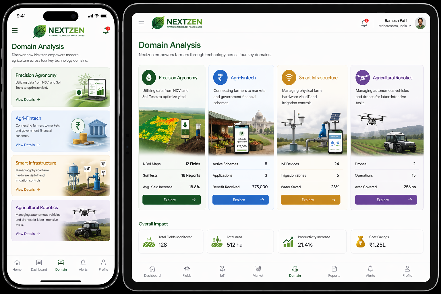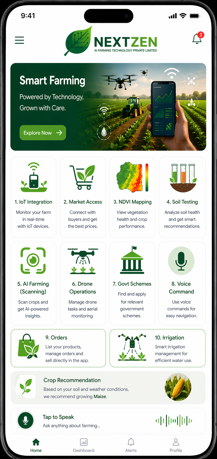 schemes. - Smart Infrastructure: Managing physical farm hardware via IoT and Irrigation